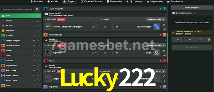 O Lucky222 oferece uma grande seleção de opções de apostas em e-sports com probabilidades competitivas